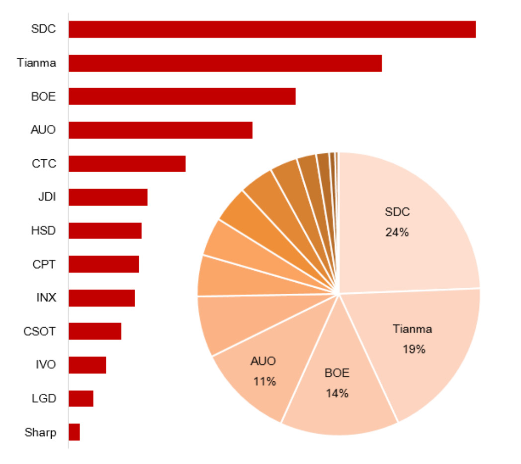 2018H1全球智能手机全面屏面板出货排名及市占率