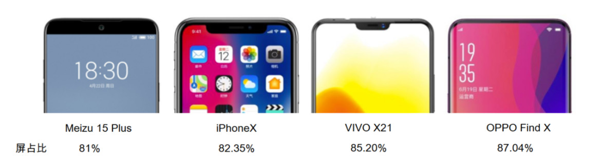 智能手机显示屏形态及屏占比对比
